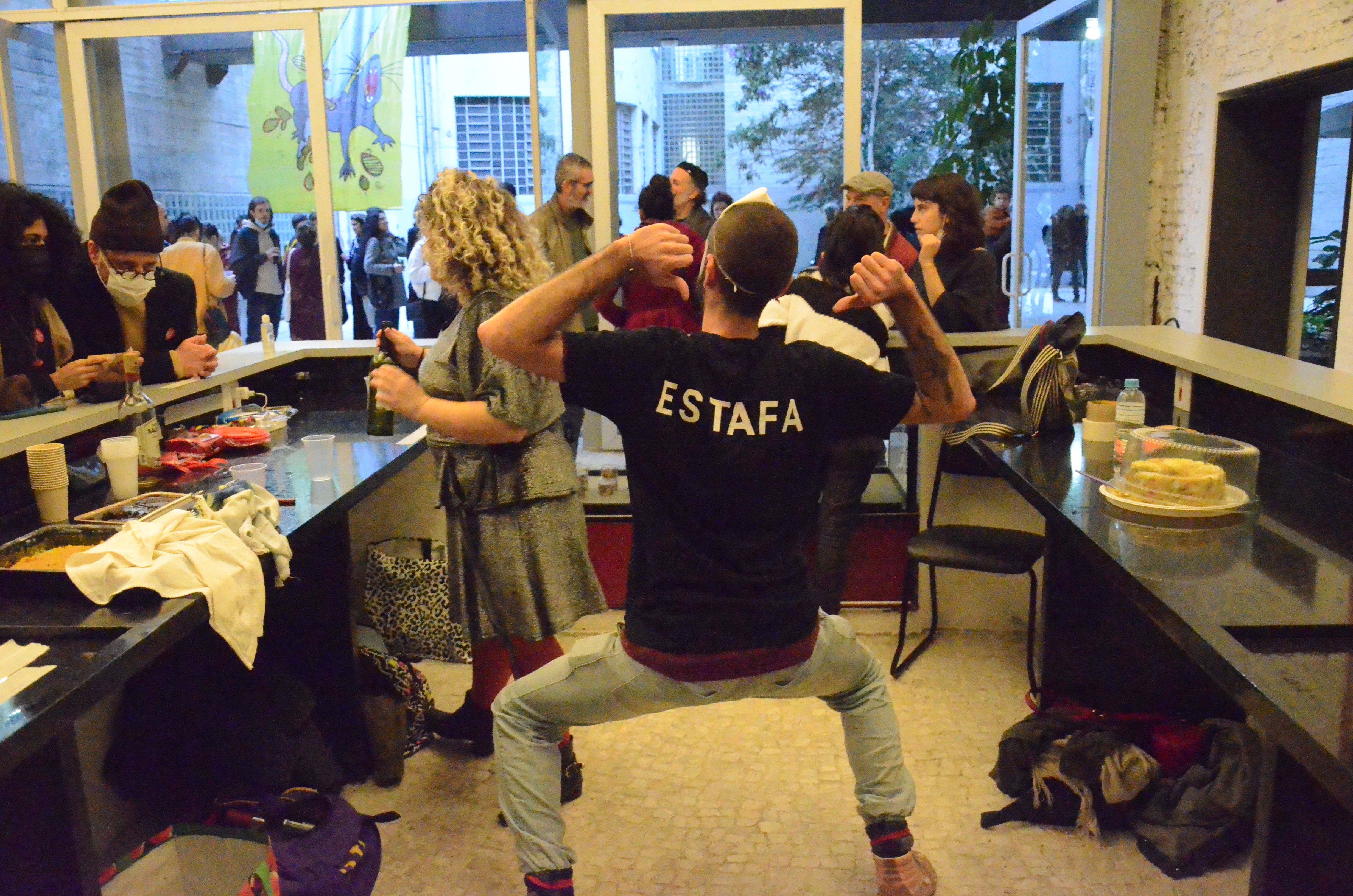 organizou um bar no saguão do Mariantonia cujas paredes foram cobertas com